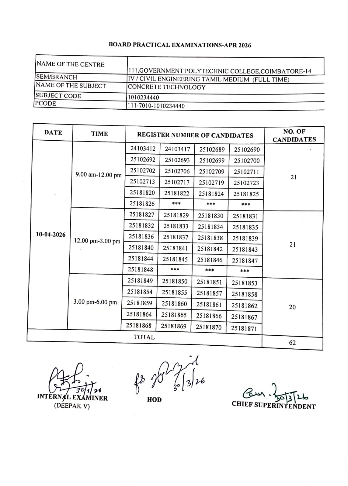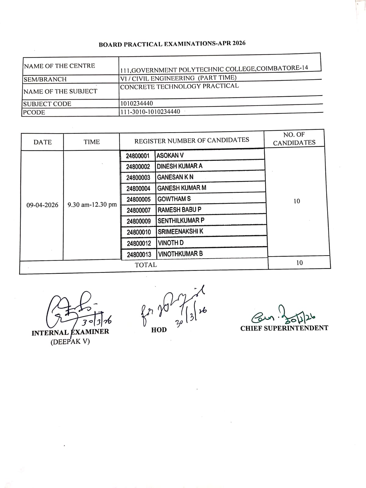 | Concrete Technology Practical (PT) | |||||||||